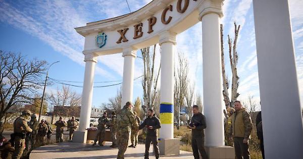 Il presidente ucraino Volodymyr Zelensky è arrivato a sorpresa a Kherson, da dove nei giorni scorsi si sono ritirati i soldati russi. Lo riferiscono diversi media di Kiev, citando la Reuters. Zelensky ha postato sui suoi canali social una serie di fotografie che lo ritraggono durante la sua visita a Kherson. Assieme alle immagini campeggia la scritta, in ucraino e in inglese, "Kherson-Ucraina".