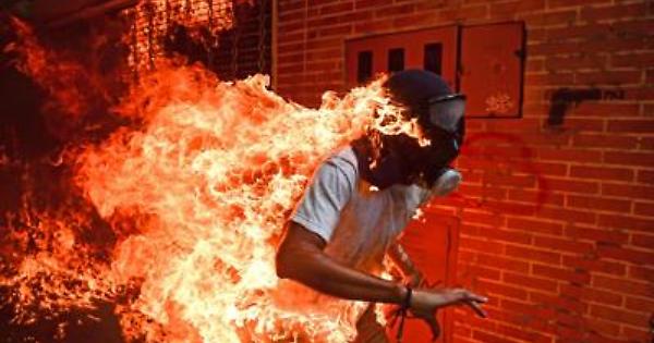 Il 28enne ritratto nella foto, José Víctor Salazar Balza, è stato avvolto dal fuoco dopo l'esplosione del serbatoio di una motocicletta. E' sopravvissuto all'accaduto riportando delle ustioni di primo e secondo grado. Per la giuria del concorso lo scatto - che ha vinto anche il primo posto nella categoria Spot News, immagini singole - simboleggia il paese "in fiamme". "Ho visto una palla di fuoco venire verso di me. Non sapevo cosa fosse. L'ho seguita, scattando delle foto senza fermarmi. Poi ho sentito le urla e ho capito cosa fosse successo. Dieci secondi ed era finita", ha raccontato il fotografo sul blog dei corrispondenti di Afp, "per me la foto rappresenta lo stato del paese. È una crisi umanitaria".