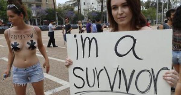 Tante donne per le strade di Tel Aviv, in Israele - chi con il seno coperto in parte, chi in bikini o reggiseno - ma anche moltissimi gli uomini che hanno partecipato tra slogan e cartelli ("Non sei colpevole", "Fai l'amore, non stuprare", "Un perizoma non è un invito allo stupro").