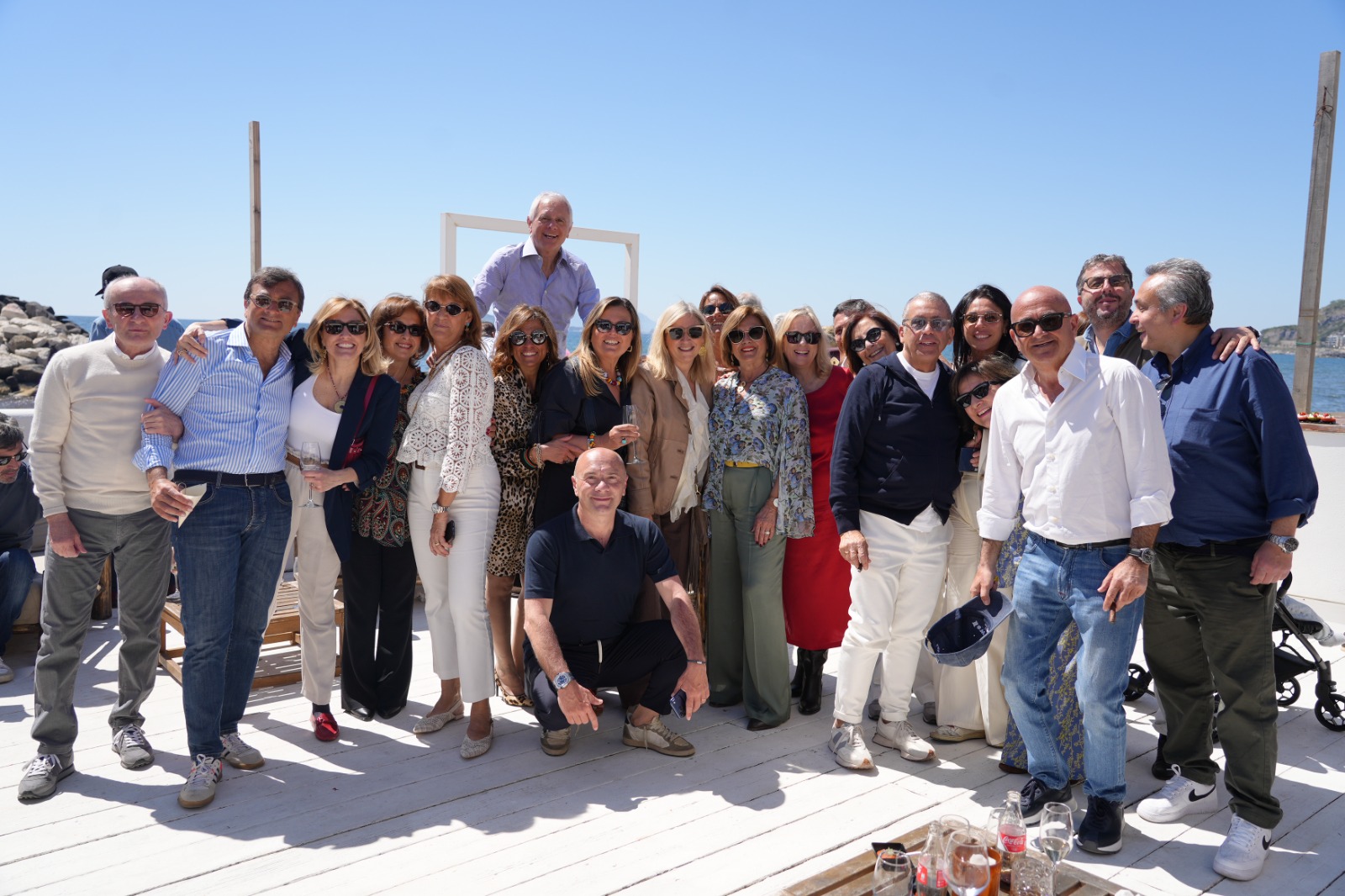 Tra tanti tavoli e divani disseminati, accolti in una bellissima giornata di sole e caldo, ecco arrivare la numerosa famiglia del festeggiato: circa 50 parenti, dai germani Coviello col fratello Angelo (noto broker assicurativo) e la sorella Rossella; il nipote Gerardo Coviello (senior) con la bellissima fidanzata, la famiglia della moglie Eliana, con Sergio (direttore Ferrari-Maserati/Samocar) con Francesca, Daniela ed Antonio, coi genitori Bruno (storico concessionario auto di lusso, oggi novantunenne) e la moglie Antonietta, oltre cugini e nipoti della legatissima e numerosa famiglia Di Gianni-Caruso-Razzino, presenti al gran completo, dalle zie del festeggiato (Elisa in primis, presto novantenne), sino ai nipotini (con l’ultimo arrivato solo pochi mesi fa, di cui il festeggiato è pro-zio!).