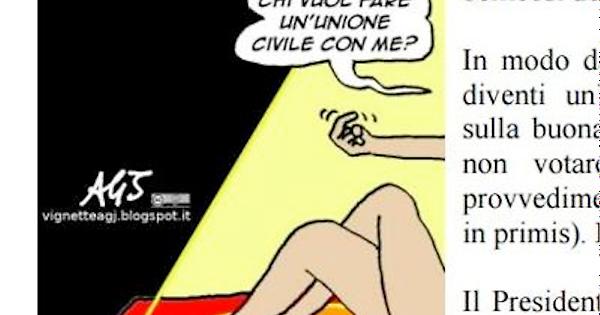 ROMA. Boschi: unioni civili con chi ci sta'. Sotto la scritta: 'Chi vuol fare un'unione civile con me?' e il fumetto delle gambe accavallate di una donna distesa. La vignetta è stata pubblicata oggi da 'Il Mattinale', la nota politica del gruppo Fi alla Camera e ha scatenato la reazione del Pd. "Satira sessista", attaccano i dem. "Vorrei sapere persone serie come @mara_carfagna @msgelmini e @stefprest cosa pensano di questa 'vignetta'", scrive su twitter il deputato Pd, Ernesto Carbone.