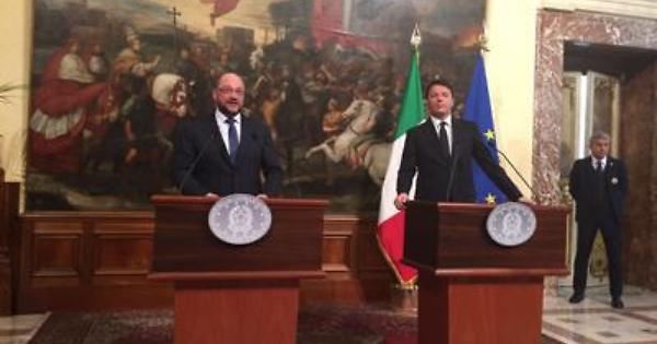 Per il presidente del Parlamento Europeo, Martin Schulz, "l'Italia non è soltanto un Paese fondatore" dell'Unione Europea, ma "è soprattutto e veramente un pilastro fondamentale dell'Europa" e ha "il governo più stabile di tutta la zona mediterranea". "Vorrei dare atto a tutti i passi coraggiosi che fa l'Italia", ha proseguito Schulz, secondo il quale l'Italia merita "rispetto" per il suo operato.