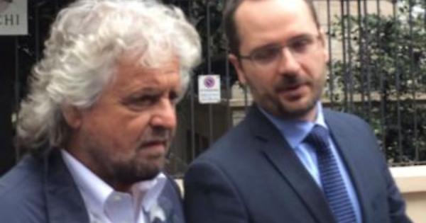 Beppe Grillo all'Auxologico di Milano per la camera ardente di Gianroberto Casaleggio. Il cofondatore del Movimento 5 Stelle è arrivato a piedi, preceduto dai cinque parlamentari del direttorio del Movimento, Carlo Sibilia, Carla Ruocco, Alessandro Di Battista, Luigi Di Maio e Roberto Fico. Tutti e cinque i parlamentari avanzavano in silenzio, tenendosi sotto braccio.