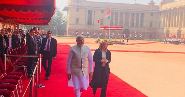 Al via la missione in India della premier Giorgia Meloni. La presidente del Consiglio è oggi a Nuova Delhi, dove incontrerà sia il primo ministro indiano Narendra Modi sia la presidente della Repubblica d'India Droupadi Murmu. "Grazie per questa splendida accoglienza. E' il mio primo viaggio bilaterale in Asia dall'inizio del mandato, nel 75esimo anniversario delle nostre relazioni bilaterali. Sono certa che riusciremo a rafforzarle", le prime dichiarazioni alla stampa del premier al suo arrivo al Rashtrapati Bhavan, il palazzo presidenziale di Nuova Delhi.
