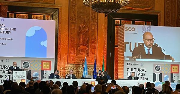 Il “Cultural Heritage in the 21th Century” rappresenta «la consacrazione di Napoli quale grande capitale della cultura globale, come testimonia la sua storia che è la sintesi tra il patrimonio materiale, nel quale c’è anche il Palazzo Reale, è quello immateriale che racchiude tradizione e culture». A dirlo, aprendo i lavori della Conferenza per il ventennale del patrimonio immateriale dell’Unesco, è il ministro della Cultura, Gennaro Sangiuliano (nella foto).