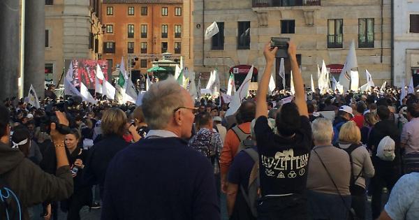 La seduta è stata abbastanza movimentata. Il presidente Pietro Grasso ha richiamato i senatori e minacciato di far sedere ognuno al proprio scranno invece di seguire il voto in piedi nell'emiciclo. Contemporaneamente alle votazioni del Senato, c'è stata la manifestazione di protesta del Movimento 5 stelle (FOTO). "Stiamo per fare una battaglia per tutto il popolo italiano" ha detto Beppe Grillo dal palco, presentando Di Maio come "il premier..." e dando "la parola a quello che cambierà l'Italia". "Il presidente del Senato Grasso, se non pensa alla poltrona - attacca dal palco il deputato del M5S Danilo Toninelli -, dovrebbe dimettersi per bloccare tutto questo". "Grasso dimettiti, se hai la schiena dritta, se vuoi ancora dare un minimo di dignità al tuo ruolo di arbitro terzo - chiede dal palco del M5S il senatore Vito Crimi - . Devi dimetterti, come fece nel 1953 il presidente del Senato Paratore. Questo non è un appello ma una richiesta legittima. E' l'unico che può fermare tutto. Gli chiediamo di non rendersi complice di questa massa di farabutti".