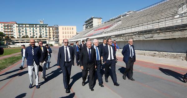 Il ministro: «Allo studio un sistema normativo che può prevedere un eventuale commissario». Sopralluogo allo stadio Collana