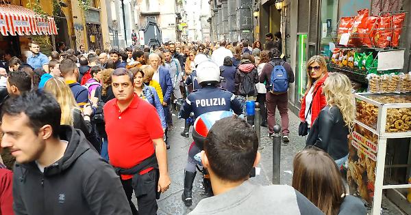 NAPOLI. Tutti pazzi per lo street food. Una certezza ormai per i turisti, che nella passeggiata ai Decumani non rinunciano al “cuoppo” di fritti o alla pizza a portafoglio. Una pausa dovuta, prima di affrontare la full immersion nei siti artistici o ciò che hanno programmato nel loro soggiorno partenopeo. Tra chi ha preferito la frittura o un panino veloce, c’è anche chi invece ha atteso con pazienza all’esterno delle pizzerie del centro storico il proprio turno. A Pasqua e nel Lunedì in albis in particolare, da San Pietro a Majella fino a via dei Tribunali, un fiume di gente, tra famiglie e comitive in gita, ha affollato le strade del centro antico. Tra i tanti turisti c’era anche chi aveva in programma un breve soggiorno nelle isole del Golfo: Capri, Ischia e Procida, infatti, anche quest’anno sono state le mete preferite vista la vicinanza con la città, anche se il maltempo ha frenato molti visitatori. Il giorno di Pasqua, code davanti alle biglietterie al Porto, meno a Pasquetta quando il tempo è peggiorato. Come ogni anno i disagi non sono mancati neanche per il trasporto pubblico. A Pasqua blocco dei treni della metro linea 1 che provenivano da Garibaldi. Sono state circa due ore di stop, dalle 10 alle 12, a causa di un guasto tecnico. Caos anche per gli orari festivi: l’Anm attraverso il sito ufficiale e i social aveva avvisato gli utenti sulle ultime corse in partenza dai capolinea (da Piscinola alle 12,30 e da Garibaldi alle 13) prima di riprendere le corse alle 16,51 da Piscinola e alle 17,30 da Garibaldi, tuttavia davanti ai cancelli delle metro e delle funicolari non c’era nessun avviso per i turisti. E oggi sono rimaste chiuse per un’ora, dalle 18 alle 19, le stazioni della metro Linea 1 di Municipio e Dante per sovraffollamento. Un altro treno è stato messo in circolo poco dopo.