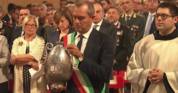 La lampada votiva è stata accesa dal sindaco Luigi de Magistris. Il cardinale Sepe: «In Europa abbiamo bisogno di ritrovare il senso di una lunga tradizione cristiana che, nello spirito del dialogo di Francesco, serva a dare sicurezza ai cittadini». Il governatore Vincenzo De Luca ha sottolineato che «il legame di sangue tra noi campani, l'Umbria, e luoghi sacri come Pietrelcina e Assisi è fondamentale in un tempo complicato con forme nuove di alienazione»