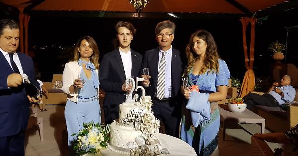 Una festa raffinata all'hotel del Congressi, nell'abbraccio dei figli Martina e Agostino, nonni, zii e i più cari amici