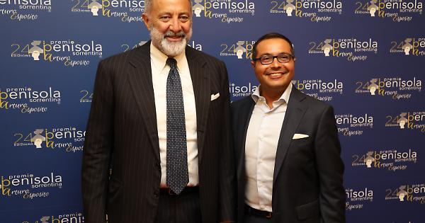ROMA. Al teatro Eliseo di Roma sono stati proclamati i vincitori della 24ª edizione del premio nazionale “Penisola Sorrentina” che si svolgerà al teatro delle Rose di Piano di Sorrento il 26 ottobre nel cartello dei grandi eventi della Regione Campania. Il premio, fondato nel 1996 dal poeta sorrentino Arturo Esposito, si conferma un appuntamento di rilievo per il mondo della cultura e dello spettacolo, posto sotto l’Alto Patrocinio del Parlamento Europeo e patrocinato dalla Presidenza del Consiglio dei Ministri, dal Mibact e dal Ministero dell’Interno. Sarà uno speciale omaggio-video introduttivo di Maurizio Costanzo a dare il via alla serata-spettacolo che a Piano di Sorrento porterà nomi prestigiosi della cultura e dello spettacolo. Insieme con il direttore generale del premio, Mario Esposito (con Luca Barbareschi nella foto di Mario Occhiobuono), sono intervenuti, per la presentazione romana, il direttore artistico dell’Eliseo Luca Barbareschi (dallo scorso anno presidente della sezione teatro del riconoscimento), Danilo Rea (presidenze della sezione musicale del riconoscimento), Vincenzo Iaccarino sindaco della città di Piano di Sorrento, il critico letterario Patrizia Danzè (che ha tracciato il profilo dello scrittore e prefetto Raffaele Lauro cui è stato consegnato il premio alla carriera narrativa dopo una introduzione letta dall'attrice e cantante Anna Capasso, vincitrice premio nell'edizione 2018). Ecco i vincitori e le categorie dell’edizione 2019: Sergio Cammariere (premio per la musica); Pierdavide Carone (premio giovane autore – Lino Trezza); Maurizio Costanzo (premio alla carriera); Christian De Sica (premio per il teatro); Fabrizio D’Esposito (premio genius loci); Vanessa Gravina (premio personaggio femminile); Svetlana Kasyan (premio internazionale); Raffaele Lauro (premio alla carriera narrativa); Ludovica Nasti (premio attrice rivelazione); Gino Rivieccio (premio Dino Verde); Gennaro Sangiuliano (premio per il giornalismo); Senato & Cultura (premio per comunicazione istituzionale).
