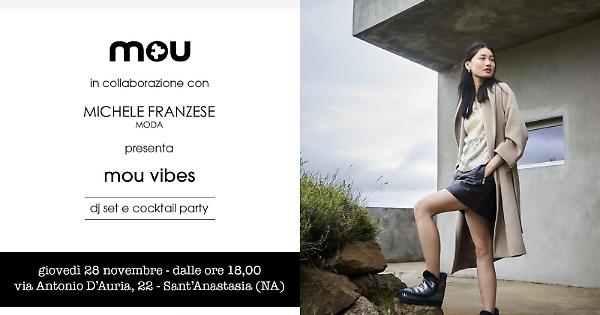 SANT'ANASTASIA. Special event per la presentazione della nuova collezione invernale degli stivali Mou con ospiti doc, cocktail party e dj set di Claudio Delgado e Vincenzo Paccone: l'iniziativa, organizzata da "Mou" (marchio londinese di culto che produce calzature originali realizzate a mano in fibre naturali di eccellente qualità) in collaborazione con Michele Franzese moda, è in programma presso la sede di Sant'Anastasia di Michele Franzese in via Antonio D'Auria 22, giovedì 28 novembre alle ore 18.