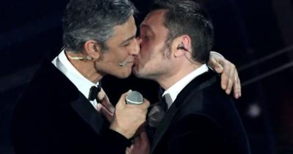 Il medley di Tiziano Ferro finalmente in prime time, poi il duetto con Fiorello e il bacio sulle labbra che ufficializza davanti a tutta Italia la pace fatta.