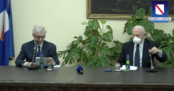 Il presidente della Regione Campania Vincenzo De Luca e il sovrintendente e direttore artistico del Teatro San Carlo, Stephane Lissner, hanno presentato nel corso di una conferenza stampa a Palazzo Santa Lucia a Napoli il programma del Progetto “Regione lirica 2020", che partirà a luglio dal capoluogo partenopeo con spettacoli che andranno in scena su tutto il territorio regionale.