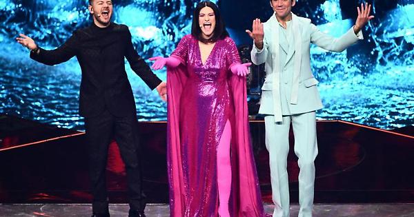 OMAGGIO A RAFFAELLA CARRÀ - Tutti in piedi per il tributo dei tre conduttori dell'Eurovision Song Contest a Raffaella Carrà con un accenno di canto e ballo sulle note di 'Fiesta'. Laura Pausini intona una strofa della hit della grande artista scomparsa lo scorso anno e Mika e Alessandro Cattelan si uniscono all'omaggio ballando mentre la grande platea del Palaolimpico li segue applaudendo e ballando.