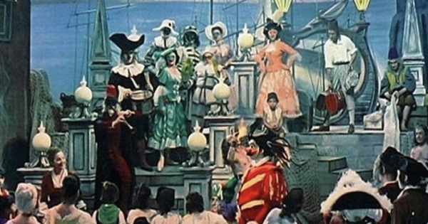 Affresco corale appassionato e appassionante, “Carosello napoletano” rappresenta ancora oggi un fulgido esempio di musical all’italiana. Film-rivista permeato di una napoletanità che va oltre il semplice stereotipo, cerca in ogni inquadratura di restituire la complessità del tessuto culturale e psicologico partenopeo. La pellicola venne realizzata da Ettore Giannini nel 1953 e le riprese, iniziate nel giugno di quell’anno, durarono diversi mesi. Fu una produzione molto impegnativa per l’epoca; le complesse coreografie furono curate da Leonid Massine, ballerino di origine russa che rese incantevole e leggiadra la maschera di Pulcinella. Film non solo impegnativo ma anche costoso: il preventivo di spesa fu di ben 420 milioni di lire a cui andavano aggiunti altri 20 milioni riservati esclusivamente alle spese sostenute per la realizzazione a colori del film. “Carosello napoletano” fu, infatti, una delle prime produzioni italiane a presentare il colore. Un colore sgargiante, dallo stile tipicamente attrazionale, esplicito riferimento all’iconografia ottocentesca napoletana. La genesi del film affonda le sue radici nell’universo teatrale, essendo la pellicola la trasposizione cinematografica (o, come ebbe a dire un critico del tempo, reinvenzione) dell’omonima commedia musicale realizzata dallo stesso Giannini nel 1950. L’opera teatrale ebbe un successo straordinario, sia in Italia che all’estero. La lirica e il balletto, la rivista e la prosa, la farsa e il dramma trovarono nel testo teatrale un’integrazione perfetta. Giannini decise dunque di fare continuare a vivere la sua produzione in un altro contesto artistico e, con il supporto di Giuseppe Marotta e Remigio Del Grosso, elaborò la sceneggiatura del film. La pellicola procede per ampi quadri corali, caratterizzati prevalentemente da canti e balli ed è forse in questo aspetto che si può ravvisare un limite del film: la mancanza, in sostanza, di una robusta linea narrativa articolata in frammenti di storie appena accennate. La messa in scena, fantasiosa e a tratti eccentrica, risente fortemente delle sue origini teatrali e il finale del film, con l’immagine classica del panorama di Napoli che scompare dietro un tendone teatrale tirato da due Pulcinella, sintetizza e sottolinea il viscerale legame che lega la città partenopea al mondo del teatro. Le strade di Napoli sono un eterno palcoscenico e in ogni napoletano risiede un potenziale artista. “Carosello napoletano” mette in rassegna la storia della città a partire dalle piratesche incursioni saracene arrivando al dopoguerra “con un gioco di specchi tra le varie epoche che mette a confronto psicologie e classi sociali” (Il Mereghetti). In questo viaggio musicale fa da Cicerone il cantastorie Salvatore Esposito (interpretato da un magistrale Paolo Stoppa) che gira per le strade di Napoli e per i sentieri del tempo seguito da una moglie perennemente insoddisfatta e da una prole numerosa. Personaggio camaleontico, il cantastorie è il filo rosso che unisce la complessa rete di vicende che si sviluppano sotto gli occhi di uno spettatore costantemente sollecitato dalle storie narrate, rese emotivamente coinvolgenti da inquadrature dall’evidente stile barocco. Il film di Giannini è insomma una festa per gli occhi e per il cuore, una ventata di freschezza in uno scenario cinematografico musicale che proponeva troppo spesso melodrammi risibili (e, quasi sempre, di matrice napoletana). Spettacolo magico, rese il nome di Ettore Giannini famoso in Italia e soprattutto all’estero in particolar modo in Francia. Difatti, proprio grazie a “Carosello napoletano” che resterà il suo successo più grande, Giannini vinse il premio internazionale al Festival di Cannes del 1954. Escludendo questa felice parentesi, la carriera del regista nato a Napoli nel 1912 è stata sempre vissuta molto in ombra: sceneggiatore di numerose pellicole, fra cui “Processo alla città” di Luigi Zampa ispirato alla vicenda del processo Cuocolo, fu anche direttore di doppiaggio. “Carosello napoletano” resta una produzione unica non solo nella filmografia (e teatrografia) di Giannini ma anche nel genere musicale italiano: hollywoodiano nella forma ma italiano nei contenuti, questo film a distanza di quasi settant’anni conserva intatto il suo smalto, in cui la massima eduardiana “Napule è ‘nu teatro antico” trova la sua espressione più sfolgorante.