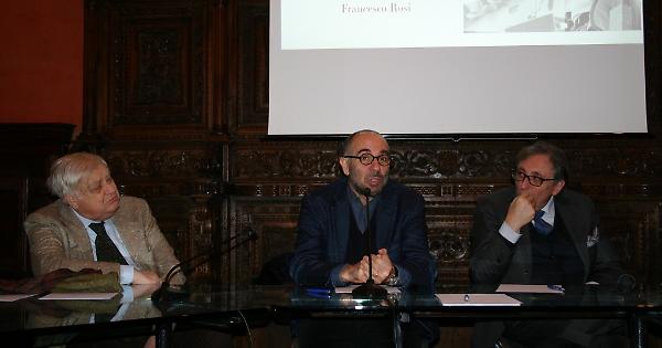 NAPOLI. Ricordi, emozioni ed aneddoti di straordinario fascino. È stata una mattinata molto intensa quella in cui, all’Università Suor Orsola Benincasa di Napoli, Giuseppe Tornatore ha ricordato il grande amico e maestro Francesco Rosi ad un mese dalla sua scomparsa. Un lungo percorso formativo quello che ha legato il Maestro napoletano e l’allievo siciliano, giovanissimo vincitore esattamente 25 anni orsono del Premio Oscar come miglior film straniero per “Nuovo Cinema Paradiso”. Un percorso raccolto nel libro conversazione con Rosi “Io lo chiamo cinematografo”, e nel documentario di Marta Pasqualini “Il cinematografo è una malattia?”, che nella discussione al Suor Orsola, con il fratello del grande regista, l’urbanista Massimo Rosi, con un altro allievo d’eccellenza del Maestro Rosi, il conterraneo regista documentarista Gianfranco Pannone e con Valerio Caprara, docente di Storia e dinamiche produttive tra cinema e televisione all’Università Suor Orsola Benincasa, hanno suggerito molti spunti di ricordi e riflessione. Ma soprattutto è stata una giornata segnata da un grande annuncio per la città di Napoli. Quello di Lucio d’Alessandro, Rettore dell’Università Suor Orsola Benincasa, che al termine della giornata ha annunciato l’imminente nascita a Napoli, proprio al Suor Orsola, di una Scuola di Cinema dedicata a Francesco Rosi. Non solo un’idea estemporanea, ma un progetto già in cantiere all’interno dell’antica cittadella monastica seicentesca che ospita l’Università Suor Orsola Benincasa, dove nascerà un vero e proprio “Palazzo della Comunicazione” (eccezionalmente aperto oggi per una visita ai lavori in corso di Giuseppe Tornatore) nel quale la “Scuola di Cinema Francesco Rosi” andrà ad affiancarsi agli studi di Run Radio, la web radio del Suor Orsola e alla redazione della Scuola di Giornalismo, nata ormai oltre dieci anni orsono come prima Scuola di Giornalismo del Mezzogiorno peninsulare.