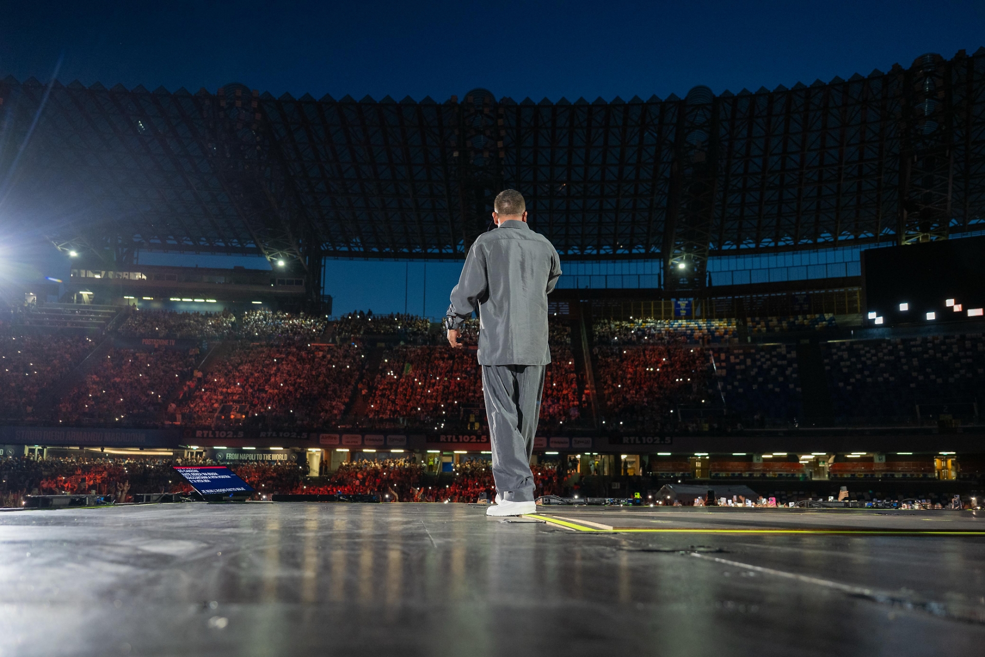 Spazio, poi, a “Una magica storia d’amore”, “Miele”, “Como suena el corazon” (feat. Clementino) e “Mon amour” prima del gran finale targato “Fotomodelle un po’ povere”, “Sotto le lenzuola”, “Guagliuncè”, “Buongiorno” - in crew con Vale Lambo, MV Killa, Lda, Franco Ricciardi, Lele Blade, Enzo Dong, Clementino, mentre scorrono sul ledwall le immagini di Napoli con festa scudetto e l’esplosione nel cielo di Fuorigrotta dei fuochi d’artificio, che anticipano il brano “Napule” con il quale si chiude la prima delle due grandi serate allo stadio di Gigi D’Alessio, con il suo pubblico, quello di casa.
