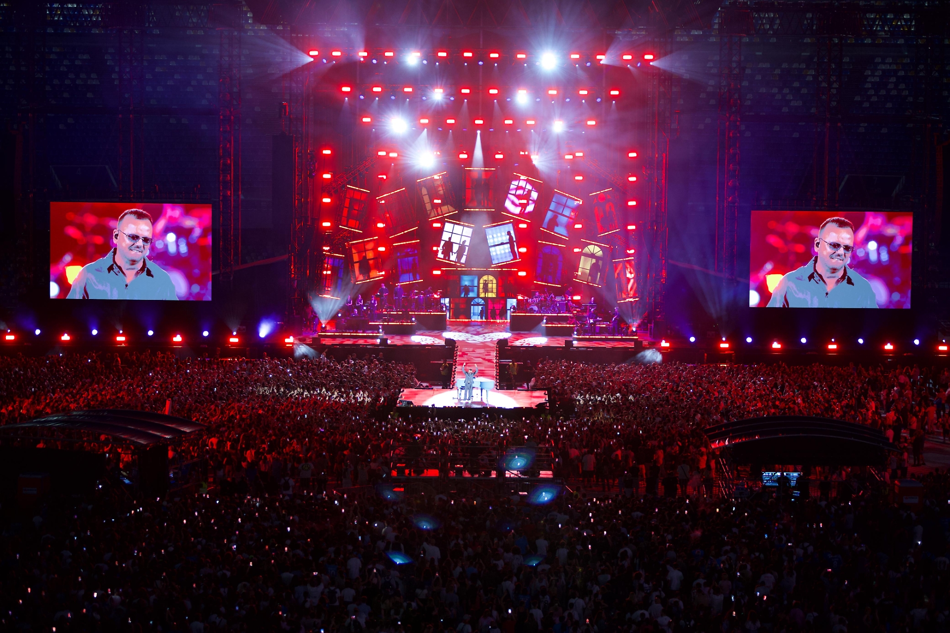 Gigi D’Alessio ha composto in carriera 3mila canzoni, di cui ne ha interpretate 500: allo stadio “Diego Armando Maradona”, dove tutto ebbe inizio il 7 giugno del 1997, ne ha proposte ben 60 agli irriducibili fan che - anche stasera per il bis - hanno affollato la struttura sportiva che appena dieci giorni fa è stata teatro del quarto scudetto del Calcio Napoli.