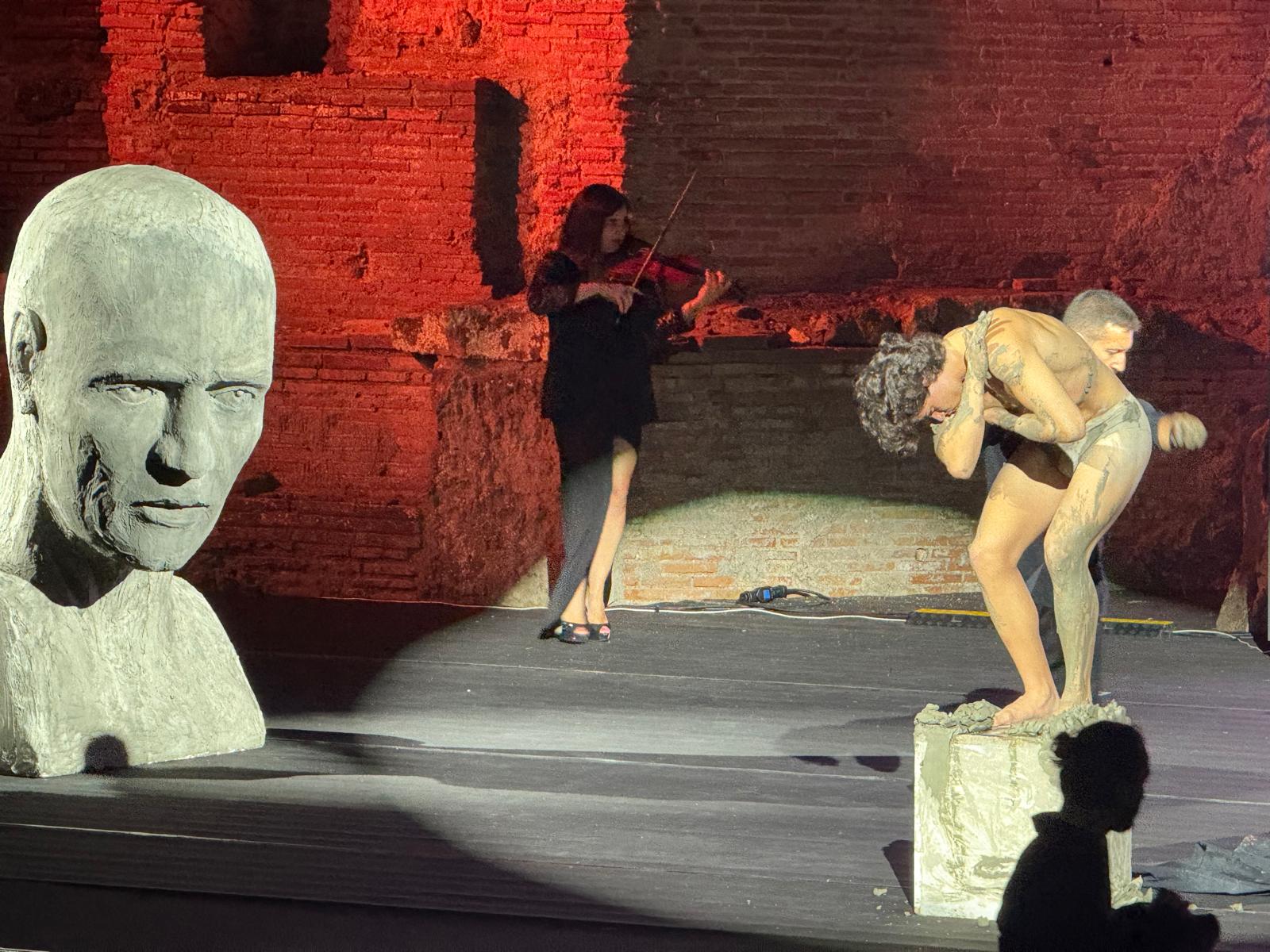 La serata si è aperta con la performance del maestroDomenico Sepe, che ha plasmato dal vivo una scultura ispirata alFauno pompeiano.