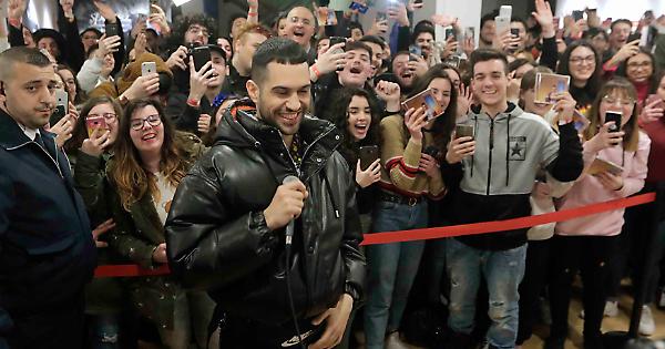 NAPOLI. Bagno di folla per Mahmood, questo pomeriggio alla Feltrinelli di piazza dei Martiri per la presentazione del suo primo album “Gioventù bruciata". Tanti i fans che lo hanno accolto con calore, tra cui il pasticciere sorrentino Antonio Cafiero, che ha realizzato per lui una torta. Il cantante era stato ospite qualche ora prima di Mara Venier a “Domenica in". Alla conduttrice aveva raccontato di essere emozionato per l'appuntamento napoletano. Per lui, infatti, si tratta di un ritorno in città. La prima volta era un bambino e ricorda una meravigliosa passeggiata con la mamma e la zia sul Lungomare.