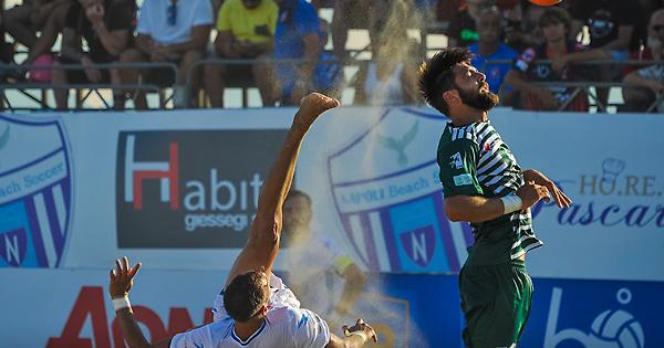 GIUGLIANO. Prosegue all’insegna del grande spettacolo la tappa di Serie Aon di Beach Soccer, valida per la Poule Scudetto, giocata nella suggestiva “Beach Arena” del lido Varca D’Oro di Giugliano. A una sola giornata (quella di domani) dal termine, sono ancora tanti i verdetti da emettere. Tra questi uno riguarda il Napoli, che oggi, battendo in rimonta (3-2) e all’ultimo respiro il Viareggio, è tornato in corsa per la Final Eight: oggi sarà decisivo il match contro Terracina. Savarese all’extra time regala un successo ai suoi che pesa tanto quanto l’oro. Sotto di due reti a fine primo tempo i partenopei hanno compiuto una rimonta esaltante spinti dai propri tifosi. Jordan e Leo Martins hanno firmato i gol che hanno scosso la partita (8 reti ciascuno nel torneo). Al Viareggio non sono bastati i colpi di Ramacciotti e Stankovic.