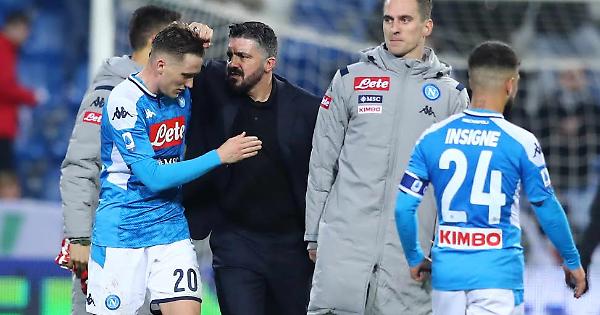E' forcing finale per il Napoli e arrivano due occasioni clamorose nel giro di un minuto: Callejon colpisce la traversa a porta vuota dai quindici metri, l'azione prosegue e Mertens da ottima posizione non trova lo specchio per un soffio con il colpo di testa. A dieci dal termine Callejon deposita in rete da due passi ma il gol viene annullato dopo l'intervento del Var per un fuorigioco millimetrico. Nell'ultimo minuto di recupero, pero', un goffo autogol di Obiang nel tentativo di anticipare Elmas regala un'insperata vittoria agli azzurri, la prima di Gattuso sulla panchina partenopea.