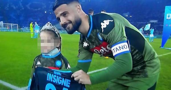 La piccola ha poi ricevuto la maglia del Napoli dal capitano degli azzurri, Lorenzo Insigne.