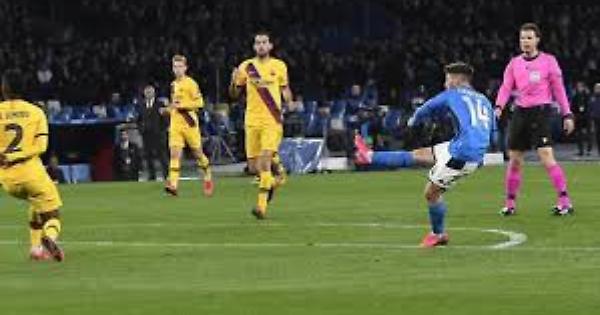 18' Nuovamente il Barcellona in zona d'attacco: buon lavoro da parte della difesa azzurra, soprattutto da parte di Mario Rui che intercetta il pallone e fa ripartire il Napoli.