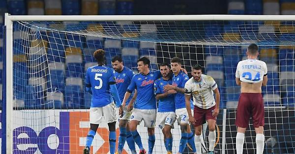 In un clima surreale, con un San Paolo vuoto e vestito a lutto ma acceso dai cori dei tifosi all'esterno, il Napoli batte il Rijeka e conquista il primo posto nel girone di Europa League. Gli azzurri superano gli avversari per 2-0 grazie alle reti di Politano, nel primo tempo, e di Lozano nella ripresa. Una sfida mai seriamente in discussione: i partenopei infatti fin da subito provano a fare la partita, mentre i croati si rintanano nella propria metà campo cercando, senza successo, di rendersi pericolosi in ripartenza. Grazie alla vittoria di oggi il Napoli si porta a quota 9 punti nel girone, con due lunghezze di vantaggio su Az Alkmaar e Real Sociedad. I giochi restano comunque aperti e per gli azzurri saranno decisive proprio le sfide contro gli olandesi e gli spangoli nelle ultime due giornate della fase a gironi di Europa League per conquistare l'accesso ai sedicesimi di finale della competizione. Intanto, già da domani Gattuso e i suoi uomini torneranno in campo a Castel Volturno per preparare i prossimi delicati impegni: domenica sera infatti al San Paolo arriverà la Roma. Il big match con i giallorossi rappresenterà un test importante per gli azzurri, chiamati al riscatto dopo il brutto scivolone interno contro il Milan.