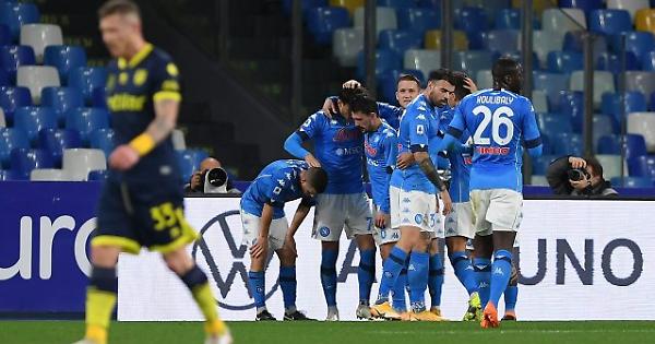43' Napoli vicinissimo al gol del raddoppio con Lozano, servito ottimamente da Petagna all'interno dell'area di rigore gialloblu. Palla fuori di pochissimo.
