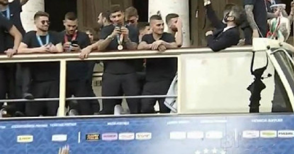 Migliaia di persone per le strade di Roma per osannare gli azzurri che stanno festeggiando su un pulmann scoperto per le vie di Roma. I giocatori della Nazionale di Roberto Mancini, usciti da Palazzo Chigi, sono saliti a bordo del bus scoperto concedendosi con alcuni tifosi per i selfie. Poi sul pulmann tante foto con il trofeo cantando l'inno nazionale. I giocatori della nazionale hanno voluto fortemente e ottenuto un tour tra le vie del centro su un pulmann scoperto per un 'abbraccio' a distanza di sicurezza con le migliaia di tifosi presenti. Le vie del centro storico al momento sono una bolgia di tifo, tra tricolori, inni d'Italia, trombette e festeggiamenti. Una folla giovane, spesso munita di mascherina, pronta ad applaudire i suoi 'eroi' dopo il trionfo agli Europei di ieri sera. Il pulmann, partendo da Palazzo Chigi, dovrebbe transitare lungo questo percorso: Via del Corso, Piazza Venezia, via Quttro Novembre, Largo Magnanapoli , Via del Tritone, Piazza Barberini , Via Veneto, Piazza Brasile, Via Pinciana e il rientro all'Hotel Parco dei Principi.
