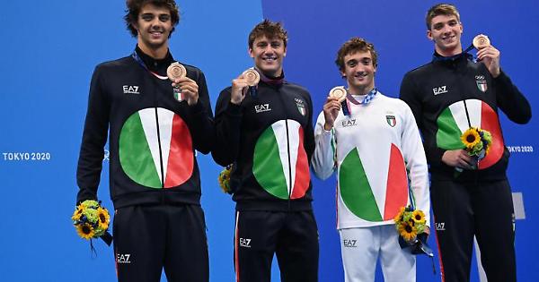 L'Italia ha conquistato la medaglia di bronzo nella staffetta 4x100 mista maschile ai Giochi Olimpici di Tokyo 2020. Gli azzurri Thomas Ceccon, Nicolò Martinenghi, Federico Burdisso e Alessandro Miressi hanno chiuso con il crono di 3'29"17 nuovo record italiano.