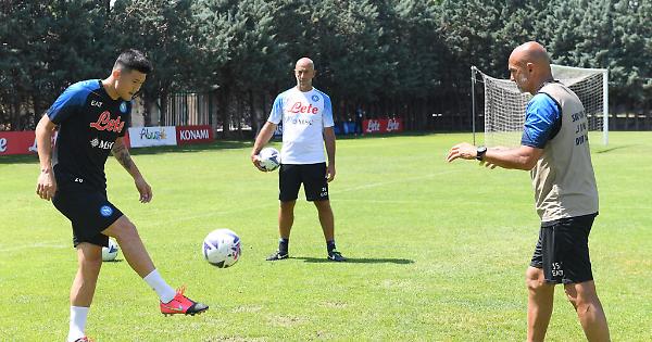 «Primo allenamento per Kim che ha svolto lavoro personalizzato in campo». Lo scrive il Napoli sul suo sito, postando le prime foto del coreano, ufficializzato oggi, mentre si allena con il tecnico Luciano Spalletti.