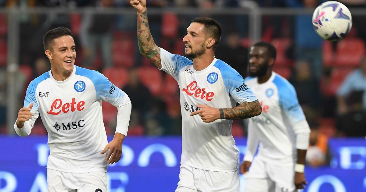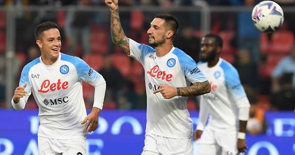 Prima che la formazione lombarda deragliasse, Ciofani con un colpo di testa, fuori, preoccupava Meret (88'). Il Napoli, sorretto dall'inesauribile Lobotka, andava incontro al trionfo. Metà campo lombarda sguarnita, sprint di Kvaratskhelia e assist per il 3-1 di Lozano (93'). Contropiede puro. E prima del fischio di chiusura (cinque minuti di recupero) Olivera di testa insaccava il quarto gol sul cross di Di Lorenzo. Salgono a dodici i marcatori azzurri in campionato con l'ingresso di Lozano e Olivera tra i golador.
