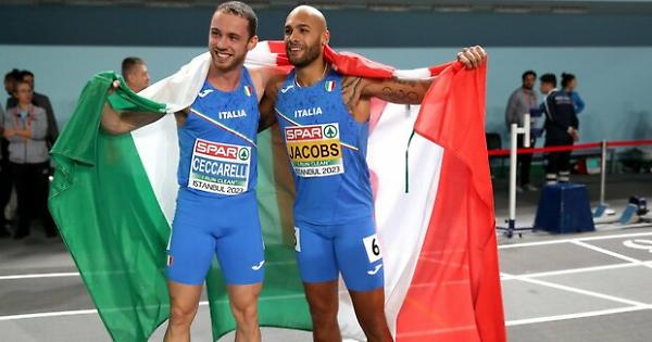 ISTANBUL. C'è un nuovo sceriffo in città. Come agli Assoluti di Ancona, Marcell Jacobs deve inchinarsi nei 60 metri a Samuele Ceccarelli, nuovo campione europeo indoor. Doppietta azzurra nella finale di Istanbul, con l'argento nel triplo di Dariya Derkach a coronare una giornata da sogno per l'Italia dopo l'impresa di Zane Weir nel peso. Ceccarelli continua dunque a vivere la sua favola. Dopo il 6"62 in batteria e il 6"47 della semifinale nonostante qualche linea di febbre (miglior tempo europeo dell'anno, il quinto di sempre a soli sei centesimi dal record europeo di Jacobs), il 23enne di Massa completa l'opera detronizzando proprio il più titolato connazionale, oro due anni fa a Torun: 6"48 il tempo che permette a Ceccarelli di mettersi al collo il metallo più prezioso. "Non so che dire, sembro monotono ma non me l'aspettavo - esulta - Non so quando realizzerò quello che ho fatto, forse fra un mese, il livello era altissimo, avevo di fronte tutti grandi campioni e io sono il nuovo arrivato". Cede dunque lo scettro Jacobs (6"50 il tempo che gli vale l'argento, primato personale stagionale), dolorante a una gamba.