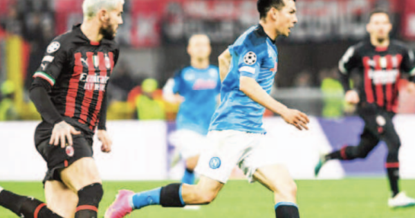 Il Napoli incerottato (senza Osimhen, senza Simeone, Raspadori pochi allenamenti in campo nella ripresa) impegna il Milan a San Siro nell’andata dei quarti di finale Champions e cede solo per 0- 1, risultato ribaltabile al ritorno, ma c’è un danno ulteriore per la sfida al “Maradona”: non ci saranno Anguissa, espulso a Milano, e Kim ammonito (era diffidato). Il Napoli ha sfoderato una gara coraggiosa e il Milan non ha ripetuto la partita strepitosa del 4-0 in campionato. Anche di fronte al Napoli con pesanti assenze, il Milan ha giocato solo una gara intelligente, tutta tesa a contenere il Napoli, offendendo poco (tiri in porta: 5 per il Napoli, 2 per il Milan). Il Milan, come nel 4-0 al “Maradona”, ha affollato il centrocampo per tenere a bada il Napoli. Giroud non ha avuto una sola palla da battere e rete. Leao ne ha battuto due fuori. Il pressing alto del Napoli ha tenuto il MIlan costantemente sulla difensiva. La tattica azzurra, lasciando spesso i difensori uomo contro uomo (Rrahmani su Leao, Kim su Giroud), con Di Lorenzo in avanti, correva solo un rischio: il contropiede del Milan. E su contropiede la squadra rossonera si è preso l’1-0. Elmas finto centravanti, ma praticamente fuori partita, tranne un paio di guizzi a inizio di ripresa. Ha funzionato il centrocampo azzurro con una grande prestazione di Lobotka, Anguissa e Zielinski. In attacco, ha fatto tutto Kavartskhelia. Poca roba Lozano.