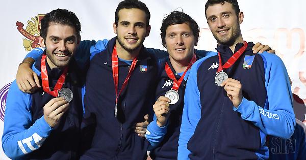 L'Italia della scherma fa incetta di medaglie agli Europei Assoluti che si sono chiusi oggi a Tblisi, in Georgia. La squadra del CT Giovanni Sirovich, dopo aver esordito ai quarti superando per 45-37 i padroni di casa della Georgia, ha avuto ragione della Germania in semifinale col punteggio di 45-39, completando una rimonta iniziata a metà match grazie dapprima a Gigi Samele, proseguita poi da Enrico Berrè e conclusa da Luca Curatoli. Nell'assalto finale, però, è stata l'Italia a subire la rimonta da parte dei campioni in carica della Russia, che hanno concluso col punteggio di 45-41.