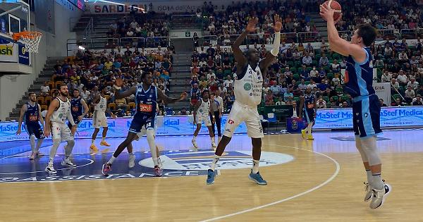 Netta vittoria all'esordio nel nuovo campionato di serie A di basket maschile, per la Gevi Napoli Basket. Il team guidato da coach Igor Milicic, espugna il PalaSerradimigni di Sassari e si impone largamente, 90-111 sul Banco di Sardegna, largamente incompleto e con le pesanti assenze di Tyree, Charalampopoulos, Raspino e il lungo degente Bendzius, il cui sostituto, lo statunitense McKinnie, era arrivato solo giovedi' in Sardegna: coach Piero Bucchi ha schierato in quintetto il giovanissimo Pisano, classe 2005.Partita dominata largamente dal team ospite partenopeo sin dalle prime battute (66% da 2 punti e 53% da 3 per gli azzurri). Netto e incomabile il divario tra le due squadre sul parquet, con la Gevi che ha terminato l'incontro con ben 6 giocatori in doppia cifra (Sokolowski 23 punti, Zubcic 20) e 5 assist per il play Pullen e con coach Milicic che ha utilizzato giustamente tutti i giocatori a disposizione.