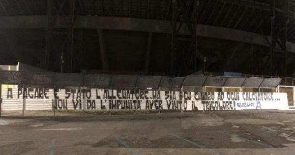 Pochi mesi dopo uno scudetto vinto dopo 33 anni, l'aria è già tesa a Napoli. Rudi Garcia è stato esonerato, al suo posto è arrivato Walter Mazzarri ma dai tifosi arriva un messaggio alla squadra: «A pagare è stato l'allenatore, ma sia chiaro ad ogni calciatore... non vi dà l'impunità aver vinto il tricolore», lo striscione firmato dalla Curva A e appeso all'esterno dello stadio Maradona.