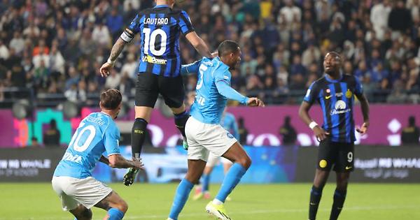 Prima di cedere, dieci contro undici, al gol di Lautaro (92’), che decide la finale della Supercoppa italiana a Riyadh (1- 0 per l’Inter), un Napoli di guerrieri viene messo alle corde dall’arbitro riminese Rapuano che espelle Simeone al 60’: secondo “giallo” per una entrata su Acerbi dopo un primo “giallo” gratuito al centravanti azzurro cinque minuti prima. Per tutta la partita, prima d’essere ridotto in dieci, il Napoli ha soffocato l’Inter, le è stato addosso uomo su uomo e raddoppi in zonapalla, concedendole un solo tiro in porta (17’ Calhanoglu) prima del gol di Lautaro. Una partita tattica degli azzurri che ha tolto il respiro all’Inter, ne ha annullato la potenza e la brillantezza al punto che Inzaghi raccomandava a Calhanoglu e a Mkhitaryan di giocare bassi temendo le ripartenze del Napoli. Sulla scacchiera preparata da Mazzarri, Cajuste con molto merito si incollava a Barella spegnendone il dinamismo; sulla destra Zerbin e Di Lorenzo rintuzzavano gli attacchi di Dimarco; faceva un gran lavoro Politano, primo pressing su Calhamoglu arretrato poi contrastato da Lobotka, il maggiore guerriero azzurro, quando il regista turco dell’Inter veniva avanti; sulla fascia opposta, Mazzocchi metteva in difficoltà Darmian e aveva campo per attaccare; Kvaratskhelia più di Simeone (generoso nei rientri) impegnava la difesa nerazzurra. Tenevano bene i centrali Rrahmani e Juan Jesus su Lautaro e Thuram. L’Inter era bloccata, il piano di Mazzarri riusciva in pieno con la novità di Zerbin al posto di Mario Rui però schierato a destra con Mazzocchi a sinistra. Nell’iniziale 3-4-3 il Napoli riusciva anche a pressare alto, limitando la costruzione dal basso dell’Inter. A lungo andare, il Napoli difendendo a tutto campo non aveva grandi opportunità di avviare una vera manovra offensiva. Ma neanche l’Inter andava a bersaglio. A inizio di ripresa, sull’unica manovra incisiva del Napoli, un contropiede iniziato in contrasto da Politano, nella metà campo azzurra, veniva rifinito da Lobotka per Kvaratskhelia e Sommer deviava in corner la conclusione del georgiano (51’), l’unico vero tiro pericoloso di tutta la partita. Una volta, in dieci, il Napoli era costretto a dare campo all’Inter, ma la squadra nerazzurra non aveva spazi per attaccare al centro, sempre rintuzzata, e allora cercava di sfondare sulle fasce con le lunghe rimesse laterali di Darmian e i temuti cross di Dimarco, imprecisi. Il Napoli sapeva resistere. Senza attacco, Kvaratskhelia in ripiegamento, puntava ai calci di rigore. Con Zerbin esausto, entrava Ostigard (58’) sulla linea della difesa. Inzaghi sostituiva i suoi giocatori ammoniti (63’ Frattesi per Barella, Carlos Augusto per de Vrij) cercando energie fresche per abbattere la resistenza del Napoli. In inferiorità numerica, gli azzurri erano costretti a giocare bassissimi, ma con una efficace barriera difensiva. Energie nuove per resistere (70’ Gaetano per Kvaratskhelia, Lindstron per Politano). Non era molto comprensibile la sostituzione del georgiano, unico attaccante. Ma ormai la partita era a senso unico nella metà campo del Napoli. Gli ingressi di Raspadori per Mazzocchi, dolorante, e Mario Rui per Cajuste concludevano le sostituzioni azzurre. Inzaghi immetteva Arnautovic per Dimarco e Alexis Sanchez per Thuram (81’). Erano proprio vicinissimi i calci di rigore, ma arrivava il gol di Lautaro, un premio eccessivo per un’Inter ingabbiata dal Napoli.