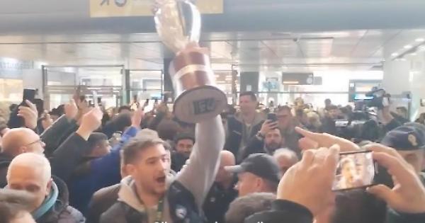 Circa quattrocento persone hanno accolto la squadra della Gevi Napoli Basket alla stazione per acclamare i vincitori della coppa Italia. La squadra è scesa dall'alta velocità da Torino intorno alle 15, Giovanni De Nicolao ha la Coppa Italia del basket come bagaglio a mano. È il ritorno in città dopo l'impresa: il trofeo vinto battendo l'Olimpia Milano in finale, a seguire le due precedenti vittorie contro Brescia e Reggio Emilia. Sciarpe, cori, tutto l'armamentario della festa sulle banchine stracolme. Ad inaugurare il pomeriggio di celebrazione: un primo passaggio al Palabarbuto, poi dal sindaco Gaetano Manfredi a Palazzo San Giacomo e infine l'abbraccio ufficiale con la gente a piazza Municipio.