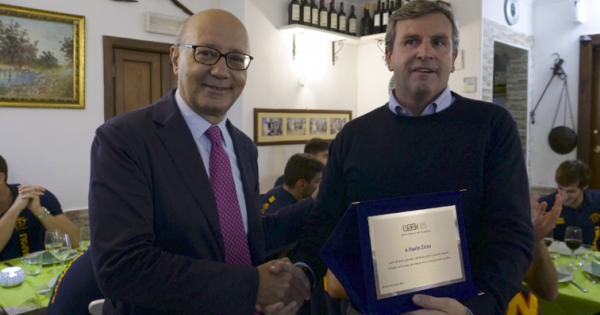 Costruisce a tavola le premesse per una stagione al vertice del campionato di A1. Gruppo già compatto e amalgamato, la Canottieri si è ritrovata al ristorante “Il Caminetto” di Michele Ragosta, in via Manzoni 81, per iniziare con il sorriso la massima serie di pallanuoto. Squadra unicamente composta da giovani italiani, capitanata dall’esperto Fabrizio Buonocore, i giallorossi sono stati premiati dall’Unione Stampa Sportiva Italiana della Campania, Gruppo “Felice Scandone”, per l’esaltante torneo scorso, la conquista del terzo posto in classifica, dietro l’inaffondabile corazzata del Recco e i vicecampioni d’Italia del Brescia, e l’accesso alla Champions League dopo 27 anni: un ritorno nell’Europa che conta, portando in alto la città di Napoli. Inoltre i “terribili ragazzi” del Molosiglio si sono ulteriormente distinti: unica compagine cittadina a disputare la Final Four di Coppa Italia. Per l’impresa sportiva maturata con pieno merito, l’USSI ha consegnato una targa alla guida tecnica del club napoletano. “A Paolo Zizza uomo di sport, grande condottiero della Canottieri Napoli in Italia e in Europa, da sempre amico dei giornalisti sportivi” la dedica rivolta al tecnico federale, assistent coach di Fabio Conti, ct del Setterosa. Fragorosi gli applausi all’indirizzo del loro mister da parte di Alessandro Velotto, il Golden Boy, bronzo alle Olimpiadi di Rio 2016 e argento in World League con il Settebello di Sandro Campagna, il fuoriclasse Alex Giorgetti, il portiere Gabriele Vassallo, i difensori Umberto Esposito, Vincenzo Dolce, Massimo Di Martire, gli attaccanti Biagio Borrelli, il mancino Eduardo Campopiano, Mario Del Basso e Gianluca Confuorto, l’estremo difensore Manuel Rossa, il centroboa Federico Lapenna, insieme ad Enzo Massa. Non hanno esitato a posare per una foto ricordo con i pallanuotisti partenopei Fabio e Roberto, nipoti del titolare, che ha sapientemente organizzato la serata, ospitando la cerimonia di premiazione e ricevendo un encomio speciale. “A Michele Ragosta amico cordiale ed abile ristoratore, punto di riferimento con il suo "Caminetto" per la stampa napoletana”. Riconoscimenti sono stati tributati a quattro giornalisti, che si sono particolarmente distinti “per l’alta professionalità e per la lunga appartenenza all’USSI”. Omaggiato il direttore del Roma, storico quotidiano fondato nel 1862, il più antico del Paese. “Ad Antonio Sasso giornalista di razza, figura storica della cronaca sportiva, collega ricco di doti umane, punto di riferimento per le giovani generazioni”. Gratificato l’inviato del Corriere dello Sport, Antonio Giordano, fine penna che tratteggia meravigliosamente le gesta del Napoli, elogiato il presidente del Coni Caserta, Michele De Simone, storica firma de Il Mattino, lodato infine il “decano” dei giornalisti sportivi irpini, Giuseppe Petrucciani. Hanno preso parte alla conviviale il giornalista Rai e vicepresidente nazionale dell’USSI Gianfranco Coppola, il presidente USSI Campania Mario Zaccaria, il vice Rosario Mazzitelli, il segretario Pier Paolo Petino, i consiglieri Enrico Deuringer, Luigi Carbone, Massimo Sparnelli, Lucio Bernardo, Antonio Vuolo, Luigi Zappella con il figlio Domenico, il collega de Il Mattino Lucio Cirino Pomicino, il presidente dell’OdG Campania Ottavio Lucarelli, il presidente della Fin Campania Paolo Trapanese.