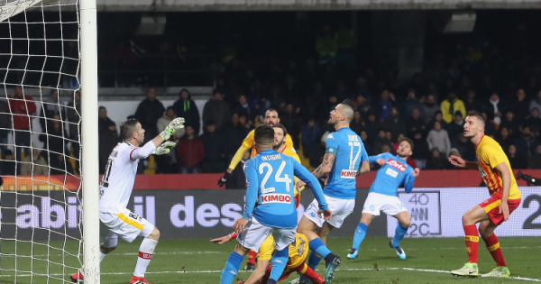 BENEVENTO. Benevento battuto e controsorpasso alla Juventus riuscito. Ma anche in una serata in cui si riappropria del comando perso nel pomeriggio il Napoli non puo' sorridere fino in fondo per l'infortunio di Mertens. Il belga - autore di un pallonetto delizioso che ha spaccato un match piu' scorbutico del previsto, chiuso in apertura di ripresa da Hamsik - e' stato costretto a uscire attorno al 75' dopo un'entrata durissima di Djimsiti sulla caviglia sinistra che ha subito una brutta distorsione: nelle prossime ore sara' tutto piu' chiaro, nel frattempo Sarri riesce a piegare, pur senza brillare, la resistenza di un Benevento coraggioso e orgoglioso. L'enorme differenza tecnica (e di classifica) tra le due squadre alla lunga si e' vista, ma gli uomini di De Zerbi hanno sempre provato a giocare, a uscire palla al piede. Che partenza del Benevento, tutto spirito e determinazione: le conclusioni di Djuricic e Guilherme finiscono lontante dai pali di Reina ma hanno il merito di incendiare il Vigorito, che si esalta in contropiede e costringe il portiere spagnolo alla prima parata al 12' sul mancino di D'Alessandro. Soddisfatto De Zerbi, che ha schierato i suoi con un 4-3-3 che vede Brignola e D'Alessandro ai lati di Guilherme, mentre Sandro (capitano per l'occasione) ha il compito di playmaker davanti alla difesa. Il Napoli pero' ha classe da vendere e al primo affondo sfiora il vantaggio: magia di Insigne, che tenta un pallonetto da stropicciarsi gli occhi dal limite dell'area. E' la traversa a salvare Puggioni, all'esordio. Al 16' Callejon per Insigne, di prima per Hamsik: alle stelle il mancino dello slovacco dal cuore dell'area, errore da matita blu.