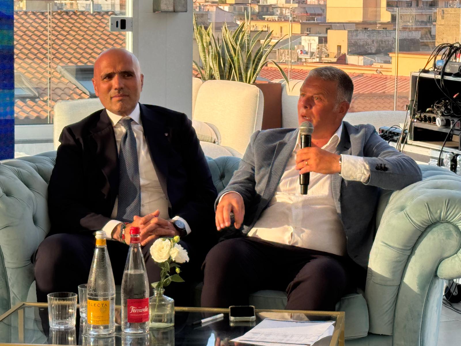 Biagio Vanacore ha presentato gli ospiti, seduti sulla terrazza dell'Hotel Stabia, proprio di fronte a un tramonto che è tra i più belli del mondo.