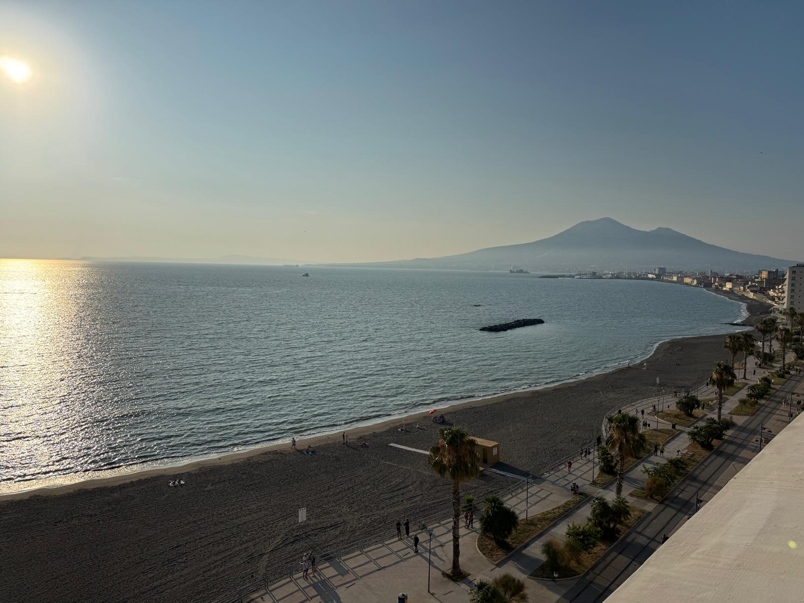 Dall'alto della terrazza dell'Hotel Stabia si poteva ammirare l'estensione del lungomare stabiese e i lavori ormai prossimi a conclusione dell'arena allestita e del Villaggio sportivo della Q8 in cui farà tappa anche il Torneo Ufficiale Nazionale di Calcio Balilla.