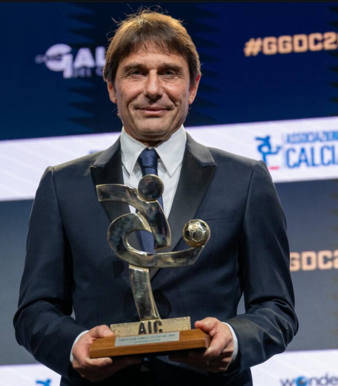 CONTE IL MIGLIORE ALLENATORE. Dagli spazi dell’Antologico – East End Studios di Milano, il Gran Galà del Calcio AIC 2025 ha celebrato il meglio della passata stagione di Serie A, conclusasi con il trionfo del Napoli guidato da Antonio Conte. Uno dei momenti clou della serata è stata la presentazione della top 11 della Serie A 2024/25, con una forte rappresentanza partenopea. Miglior allenatore e miglior club.