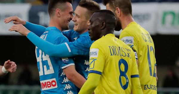 VERONA. Il Napoli batte il Chievo per 3-1 e sancisce l'aritmetica retrocessione della formazione di Di Carlo in Serie B. Nel posticipo della trentaduesima giornata di Serie A le reti di Koulibaly (doppietta) e Milik condannano il Chievo e rinviano la festa per l'ottavo scudetto consecutivo della Juventus. In vista della sfida di Europa League contro l'Arsenal, Ancelotti non rinuncia alla formazione migliore con Insigne, Milik e Mertens nel reparto offensivo. E proprio dai piedi del belga nasce la prima occasione: al 10' il centravanti polacco scarica per Mertens il cui tiro a rimorchio termina alto. Ma il gol e' dietro l'angolo e il vantaggio partenopeo arriva al 14': sugli sviluppi di un calcio d'angolo, Koulibaly attacca il primo palo e firma l'1-0 di testa. Al 24' Chiriches si divora il raddoppio: Insigne da calcio piazzato scodella in area, l'ex Tottenham di testa a botta sicura non trova lo specchio della porta.