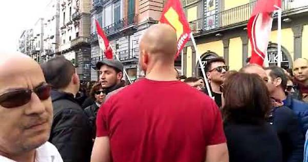 NAPOLI. Momenti di tensione poco fa a via Toledo, in Largo Berlinguer, dove i rappresentanti dei movimenti antagonisti e di disoccupati, sigle sindacali di base, centri sociali in attesa di partire in corteo verso piazza Municipio hanno invitato i rappresentanti di Fratelli d'Italia, presenti anch'essi in Largo Berlinguer con un banchetto informativo, ad andarsene. Ad evitare lo scontro agenti di Polizia della Questura di Napoli in assetto antisommossa.