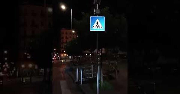 Il video mostra il funzionamento della palina luminosa e alla base la protezione con paletti per i pedoni in corrispondenza dell’attraversamento.